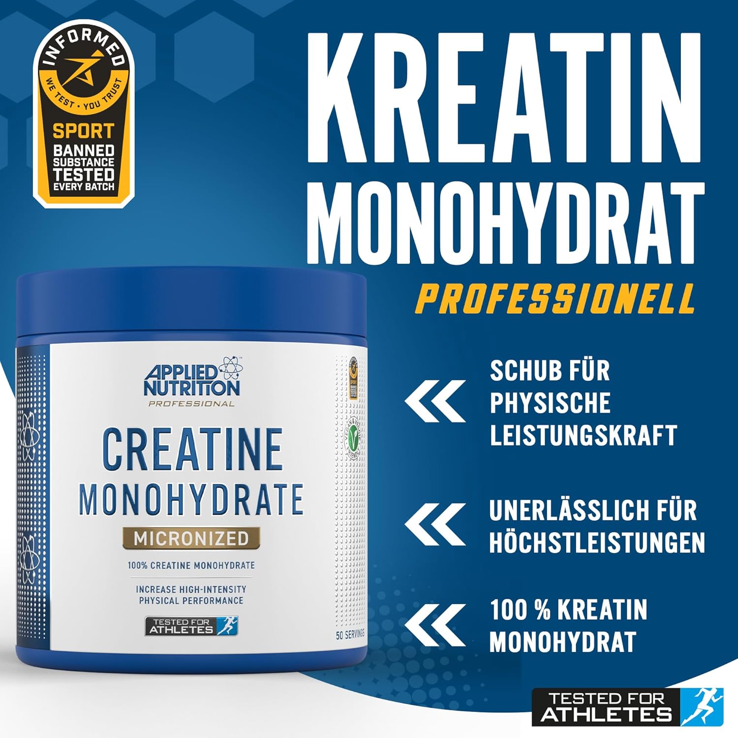 Applied Nutrition Creatine Monohydrate Micronized Powder is a premium quality supplement designed to help you perform at your peak. Each serving delivers pure micronized Creatine Monohydrate, a scientifically proven ingredient that increases strength, power, and performance during high intensity workouts.