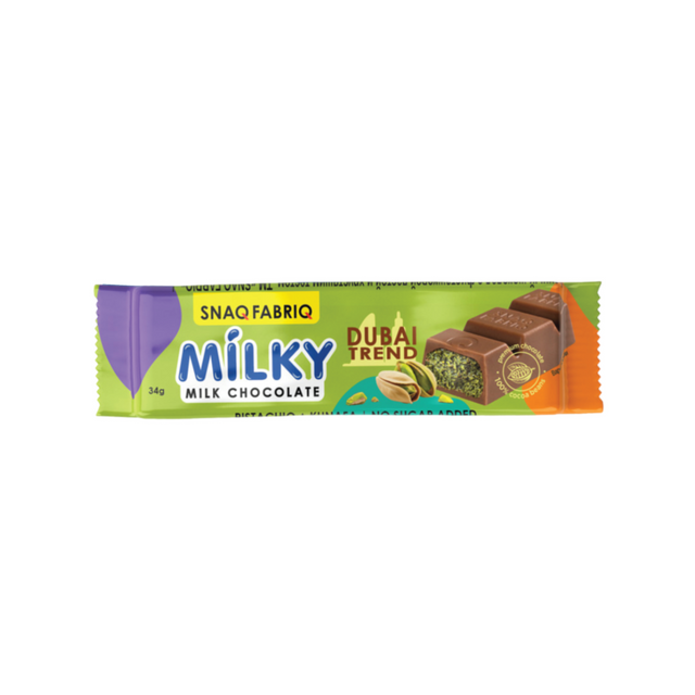 Indulge in a Middle‑Eastern inspired treat with the Snaq Fabriq Pistachio & Kunafa 34 g elegant fusion of smooth milk chocolate, rich pistachio cream, and the crispy, delicate texture of kataifi (traditional kunafa pastry). Designed for snackers who crave something exceptional yet guilt‑conscious, this bar is crafted with no added sugar and features premium ingredients for a satisfying, flavourful experience. With each bite you’ll discover the nutty warmth of pistachio, the subtle sweetness and crunch of kunafa dough, and a luxurious chocolate coating that ties it all together. Whether you’re looking for a mid‑day treat, a post‑workout snack, or an upscale dessert alternative, this bar offers a high‑quality taste sensation with the convenience of grab‑and‑go.