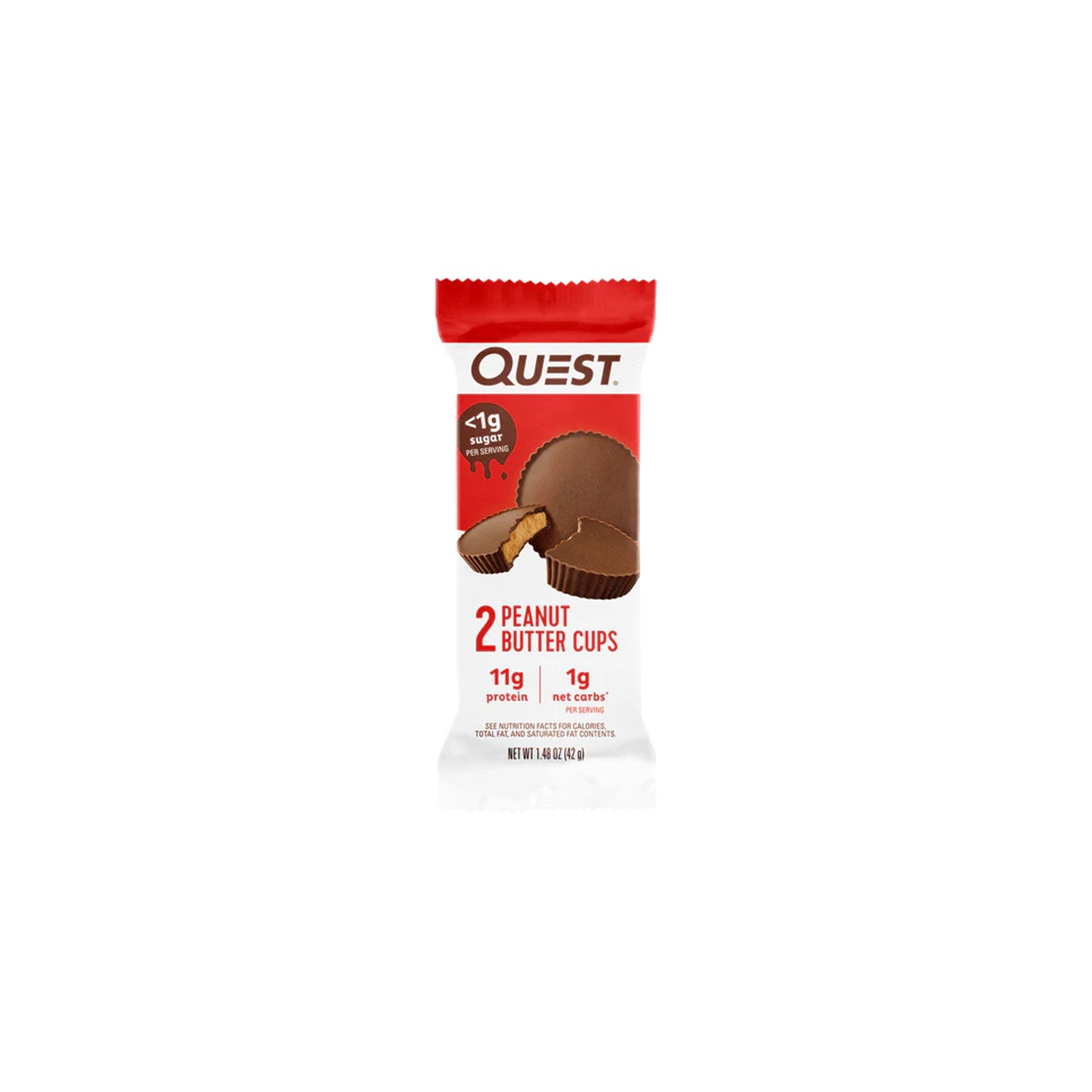 Quest Peanut Butter Cups satisfy your sweet tooth with less than 1g of sugar, 11g of protein and 1g of net carbs per serving. Can you believe it? Take a bite and find out for yourself. Keto-friendly.
