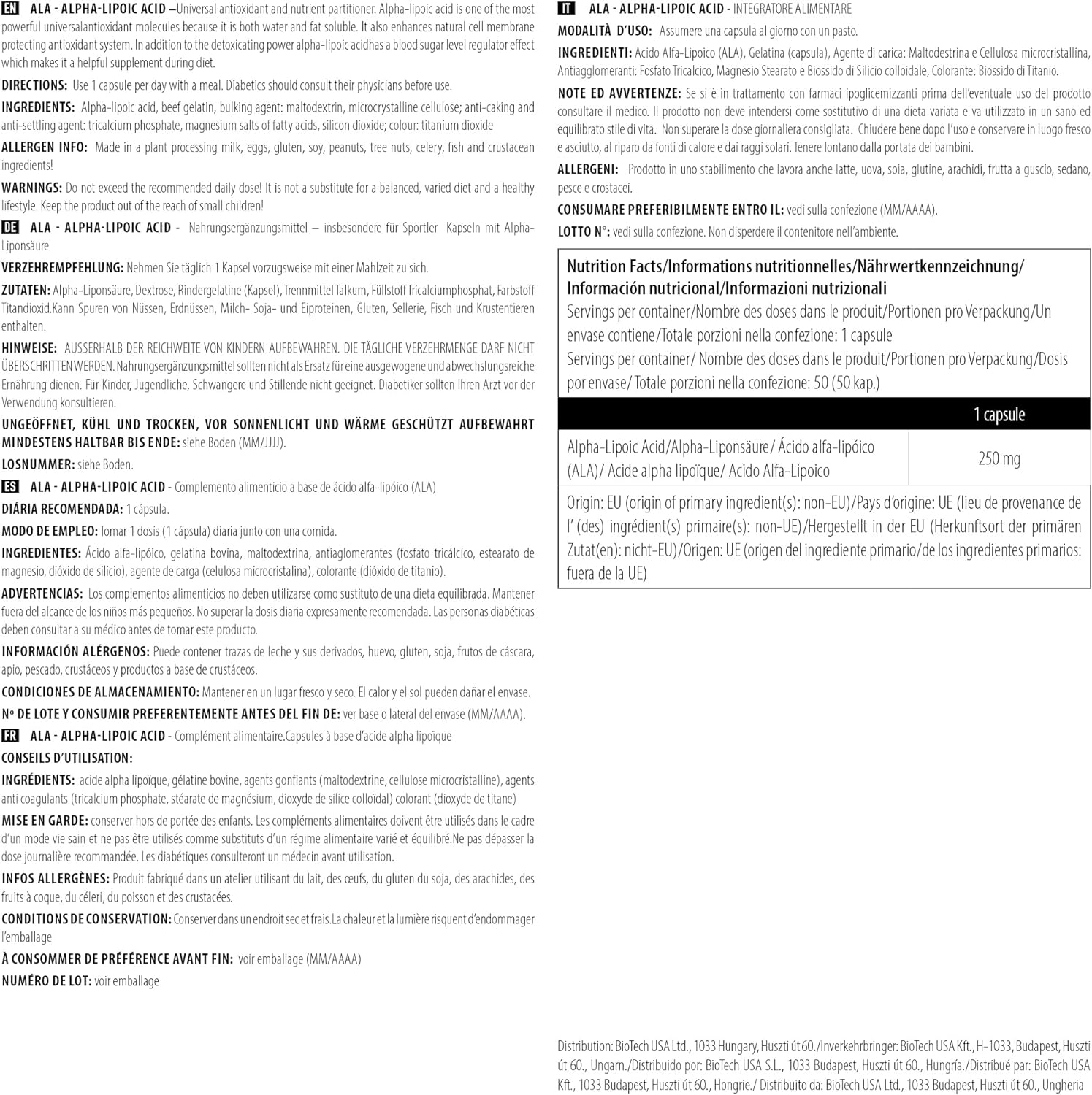 Scitec ALA, Scitec Nutrition ALA 50, alpha lipoic acid supplement, ALA antioxidant, cell protection supplement, metabolic support, blood sugar support, anti-inflammatory supplement, fitness antioxidant, Scitec alpha lipoic acid, sports nutrition antioxidant, 250 mg ALA capsule